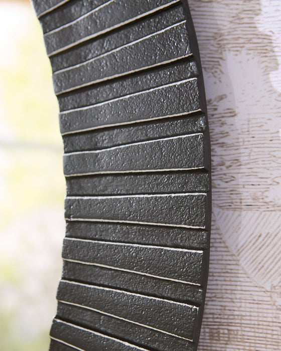 With its striking ribbed design and a contrasting black and antiqued silver finish, this accent mirror expresses modern sophistication in your space. The cast aluminum frame offers a sturdy and substantial feel, making it a lasting addition to your home. It’s simple yet elegant, reflecting both light and good taste.